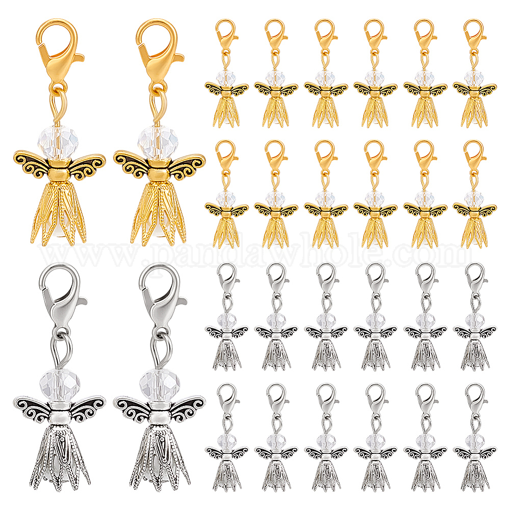 • Платиновый & Золотой 40 шт. 2 цвета: белый стеклянный жемчуг с подвеской в виде ангела из сплава, с карабин-лобстерами , платиной и золотом, 34 мм, 20 шт / цвет
