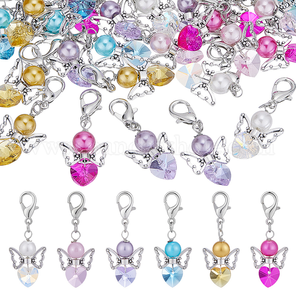 30 шт. 6 стили подвеска в форме сердца и ангела из стекла, Подвеска-застежка-когти омара для украшения сумки