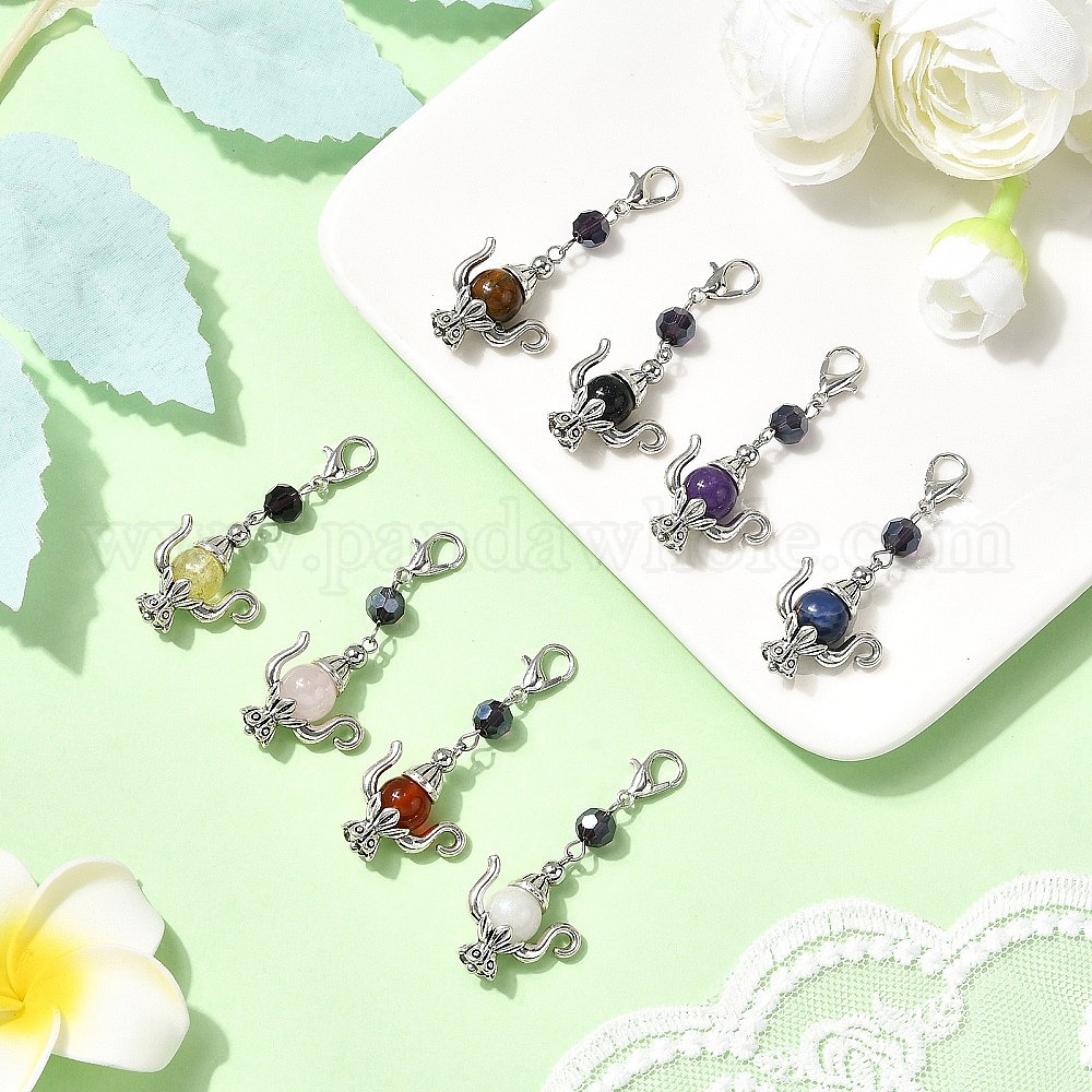 8 шт. подвесные украшения из натуральных драгоценных камней для чайников, с данными о стекле и сплаве (036R8B)
