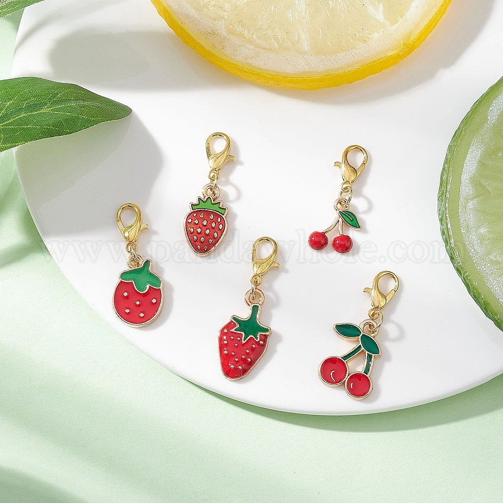 Подвесные украшения из эмалевого сплава в виде клубники и вишни, Сплав с застежками когтя омара
