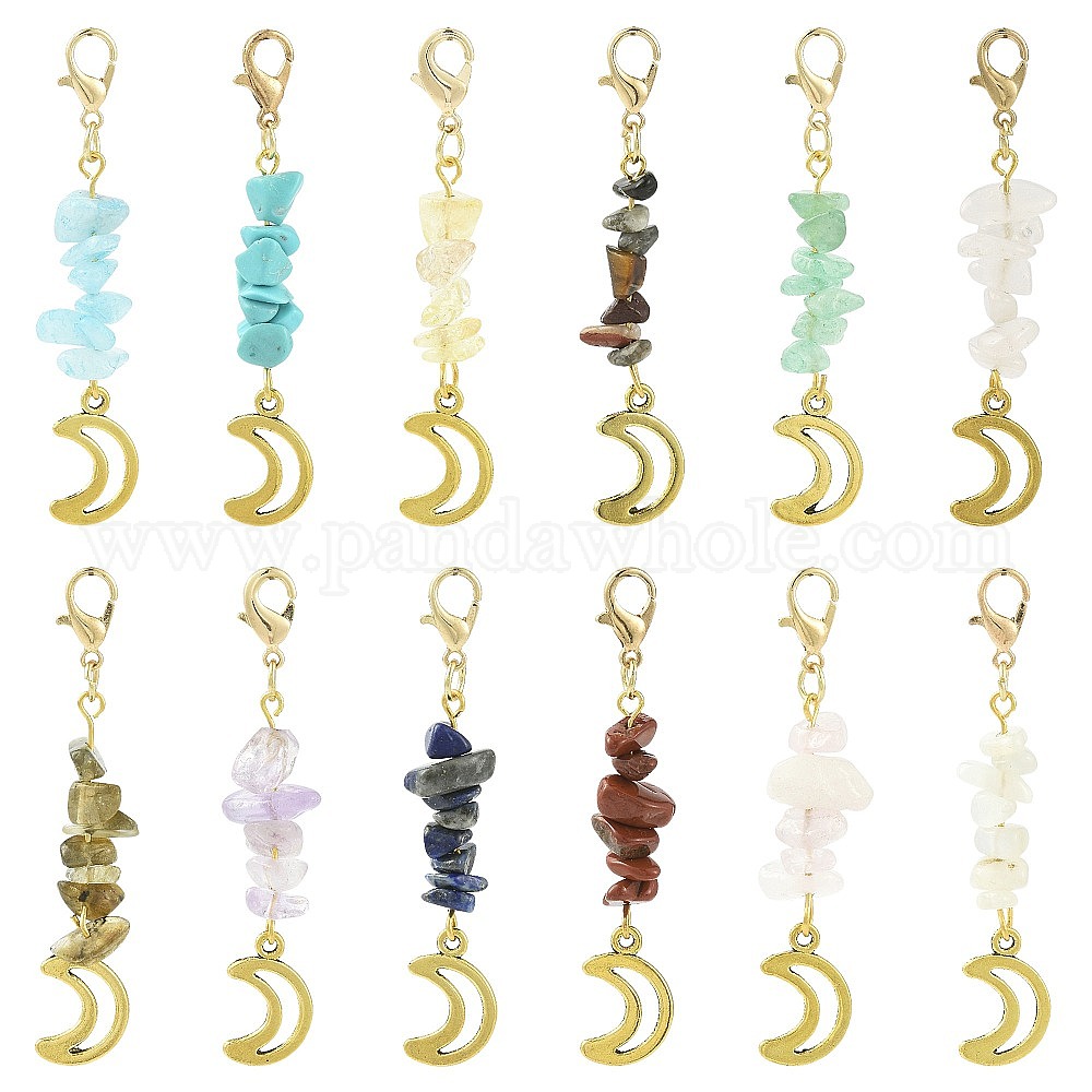 12 шт. 12 подвеска в виде луны из цветного сплава с драгоценными камнями, с карабин-лобстерами , золотые