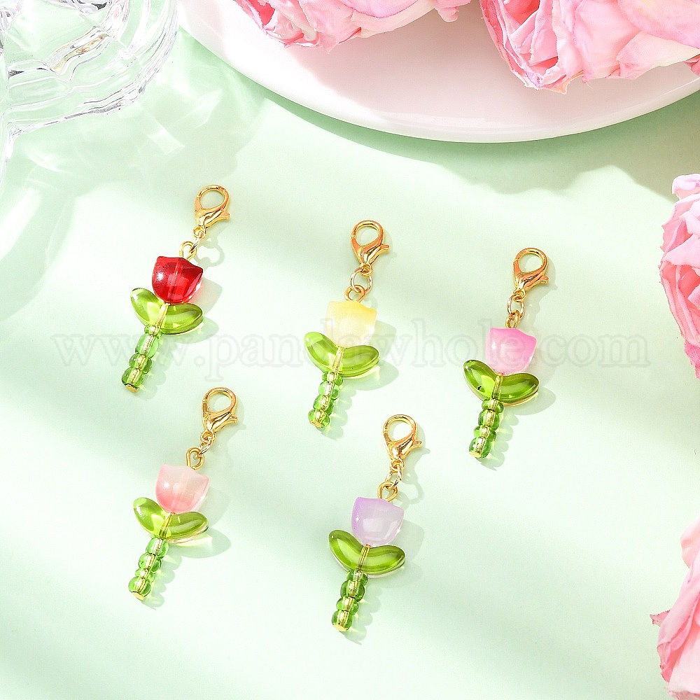 5 шт. подвесные украшения из стекла в виде тюльпана, Сплав с застежками когтя омара