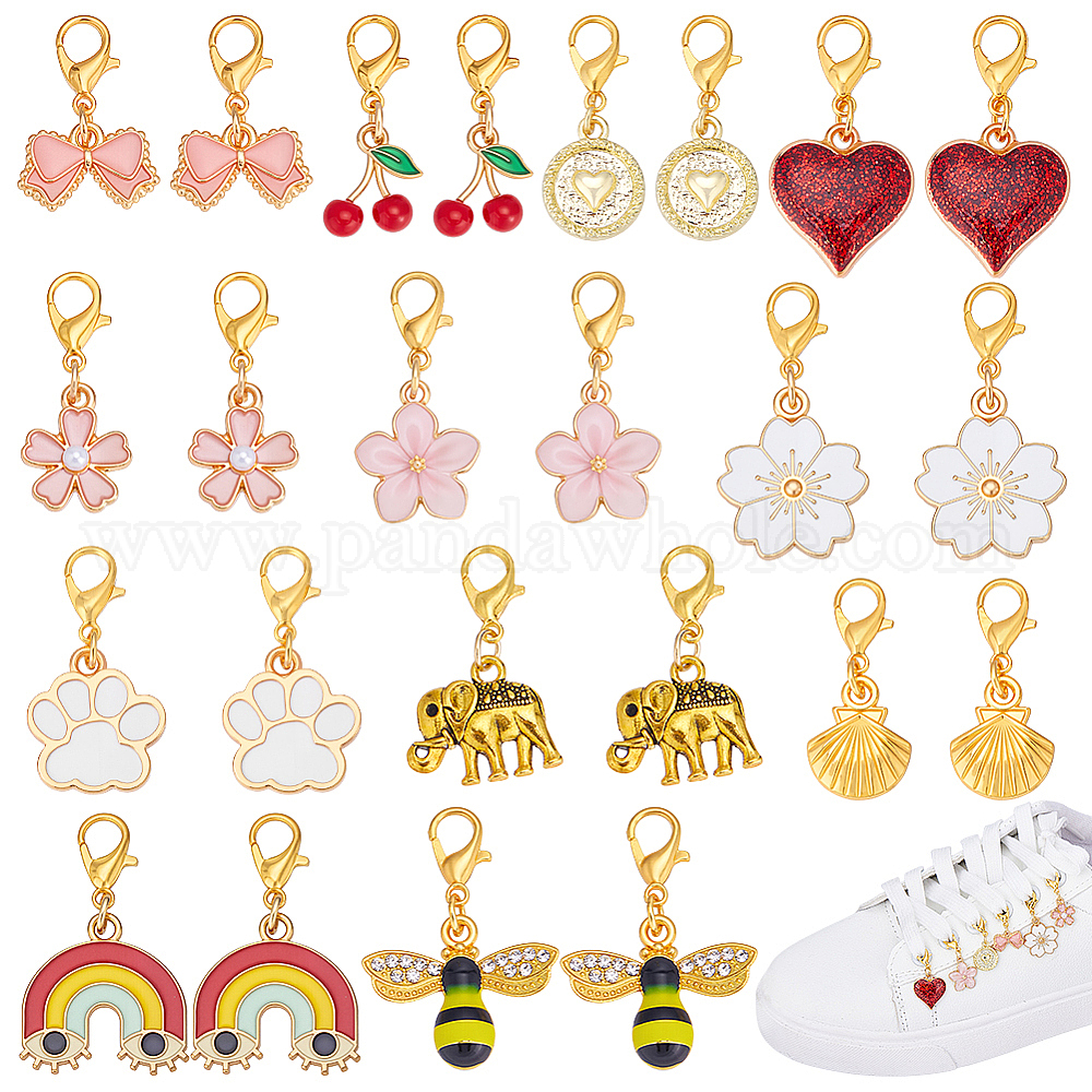 24 шт. 12 стили смешанных форм, подвесные украшения из сплава и эмали, с карабин-лобстерами , золотые