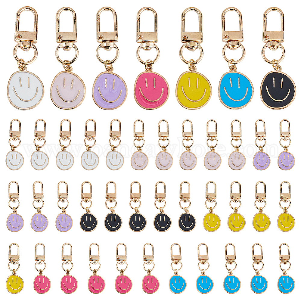 • (52) Непрозрачная лаванда 42 шт. 7 цвета сплав эмаль плоская круглая подвеска с улыбающимся лицом украшения, с поворотными застежками, золотые, разноцветные, 59 мм, 6 шт / цвет