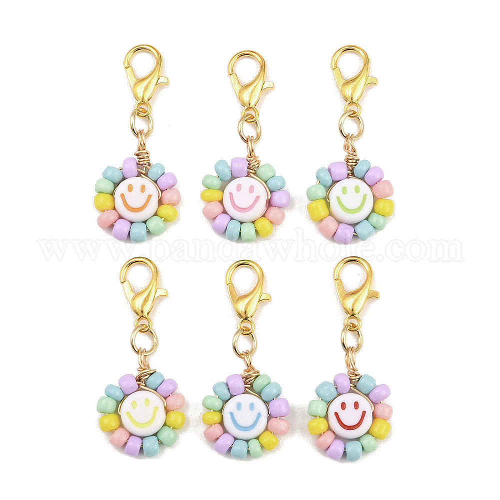 Подвесные украшения в виде улыбающегося лица из стеклянных семян и акрила, Сплав с застежками когтя омара