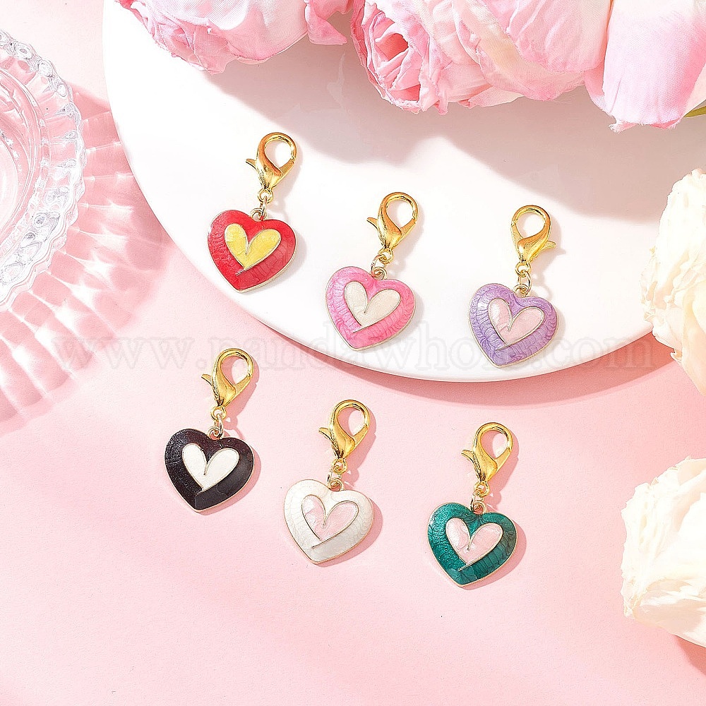 6шт. украшения с подвесками в форме сердца из эмали из сплава, подвески с застежкой-лобстером, для брелка, кошелек, украшение для рюкзака