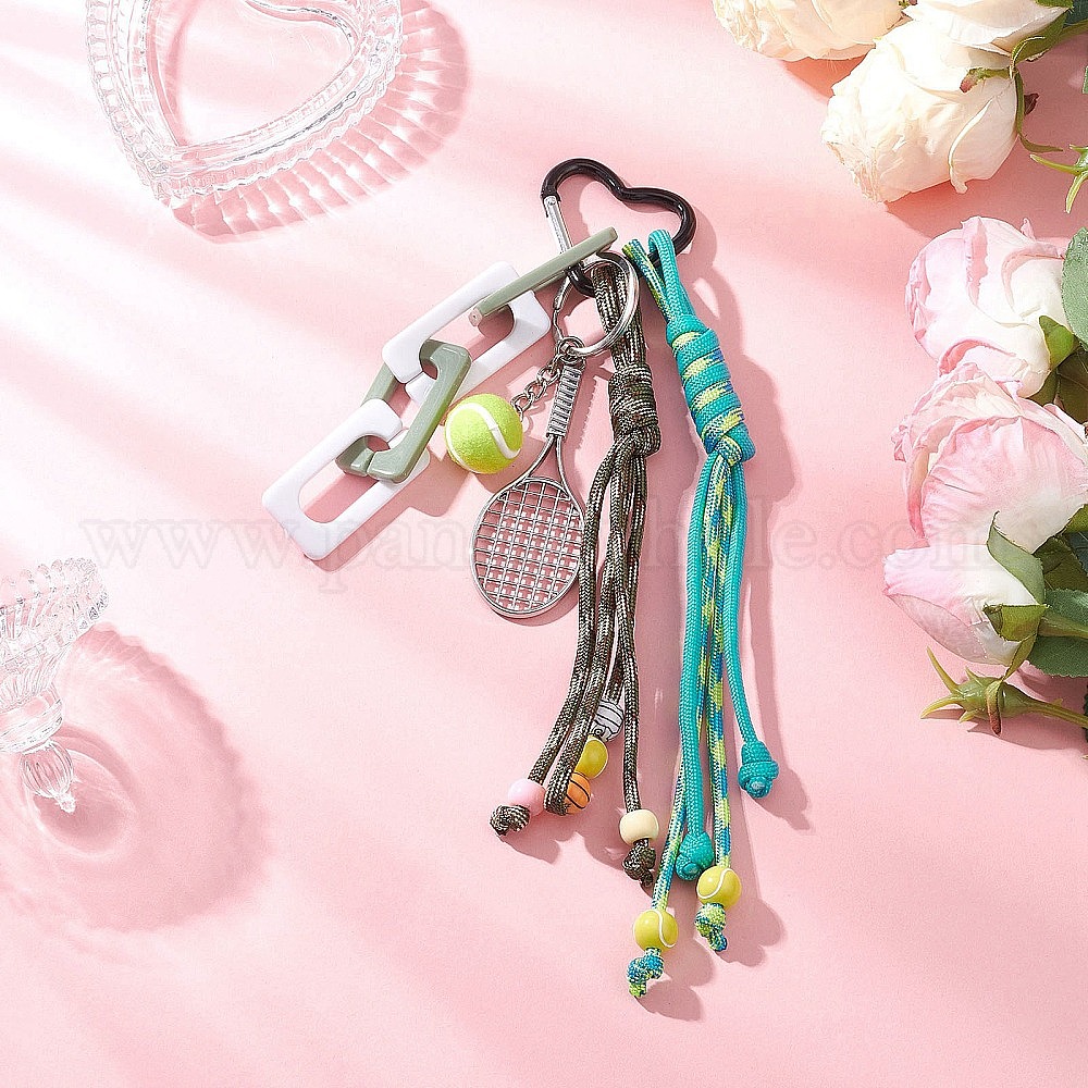 Подвесные украшения в виде ракетки для бадминтона из сплава, с полиэфирным шнуром и акриловой цепочкой, Алюминиевые застежки в форме сердца для украшений сумок