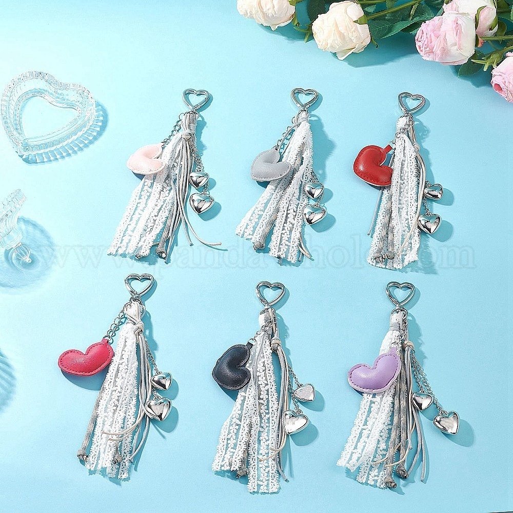 Подвесные украшения из искусственной кожи и пластика ccb в форме сердца, с кружевной лентой, поворотные застежки из сплава в форме сердца для украшений сумок