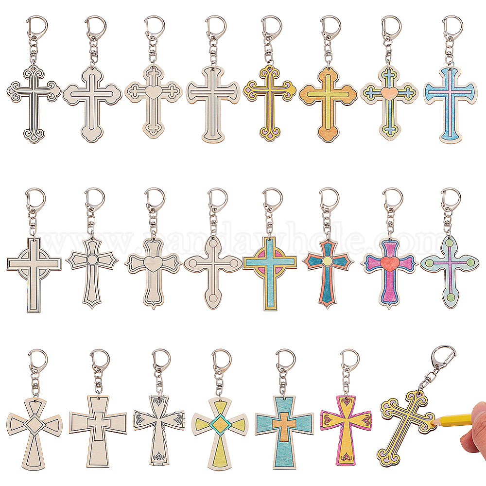 22 шт. 11 стили крест деревянные подвесные украшения, Сплав с застежкой