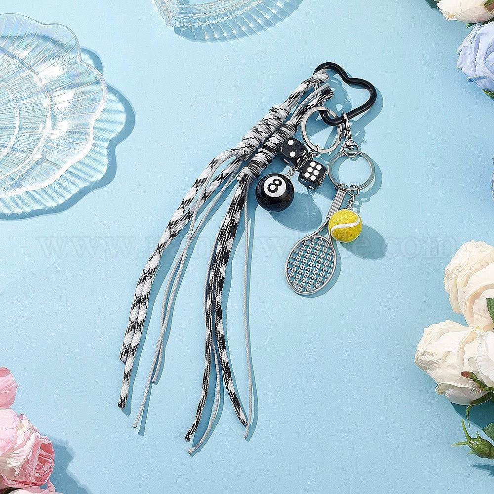 Подвесные украшения из сплава, смолы и ткани в виде ракетки для бадминтона, с полиэфирными веревками и алюминиевыми застежками в форме сердца