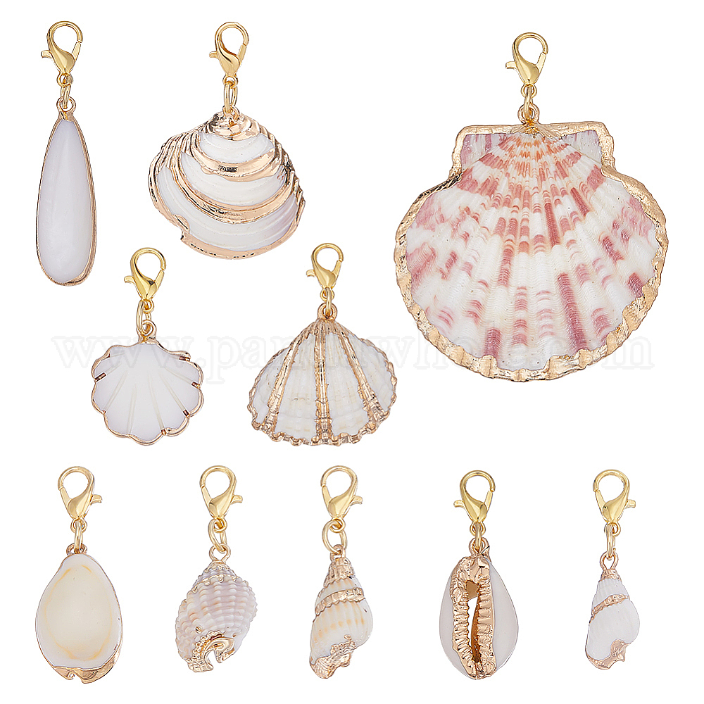 10 шт. украшения из ракушек, Сплав с застежками когтя омара, формы раковины