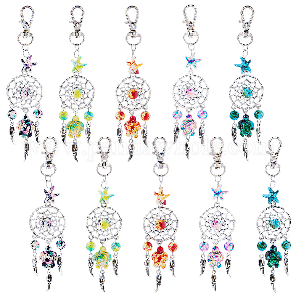 • (52) Непрозрачная лаванда 20 шт 5 цвета синтетическая бирюза морская звезда черепаха кулон украшение, плетеная сетка из сплава с крыльями и поворотными застежками-крабами, подвески для украшений сумок, разноцветные, 120 мм, 4 шт / цвет