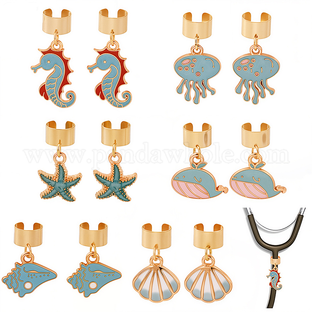 12 шт. подвесные украшения из сплава и эмали с морской тематикой, для украшения стетоскопа, с зажимом из нержавеющей стали (037DGD)