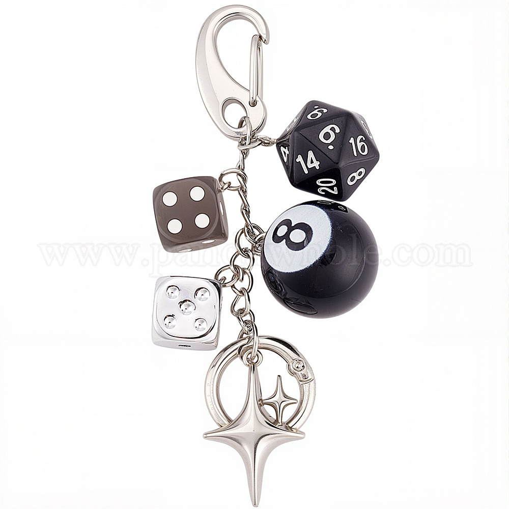 Подвесные украшения из акрила из сплава, с подвесками в виде игральных костей и бильярда