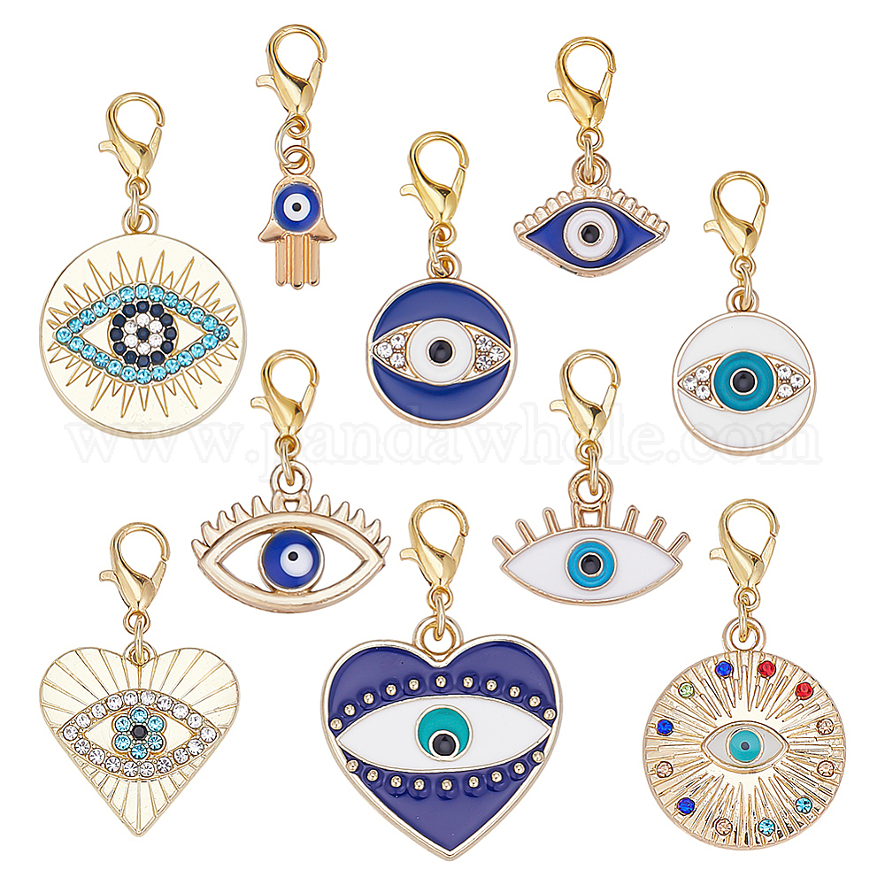 30 шт. 10 стили сплав эмаль сглаз подвеска украшения, Сплав с застежками когтя омара, разнообразные, золотые