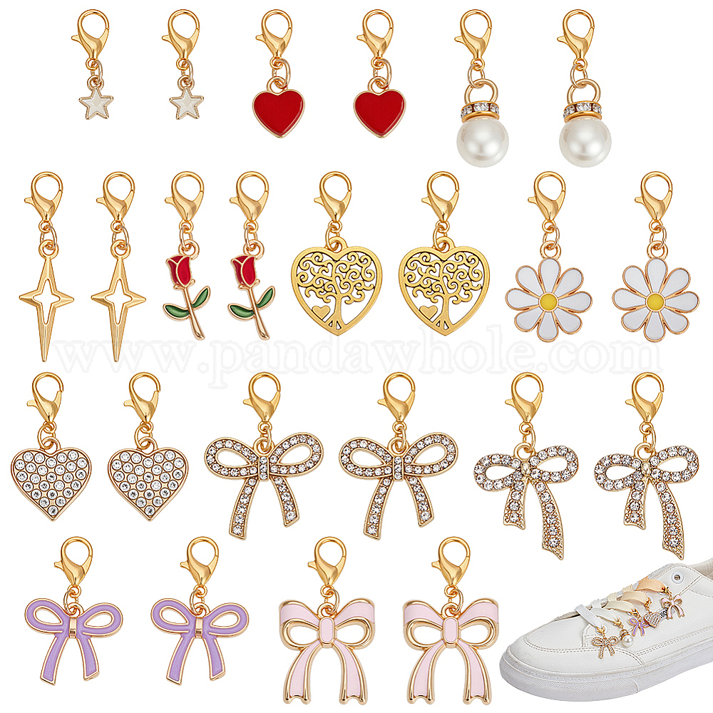 48 шт. 12 стили, эмалированный сплав, бант, цветок, сердце, подвеска, украшения, Сплав с застежками когтя омара, золотые, разнообразные