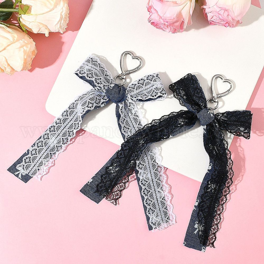 2 шт. 2 цветные банты из полиэстерового кружева, ленточные подвески, с вращающимися застежками в форме сердца из сплава, платина