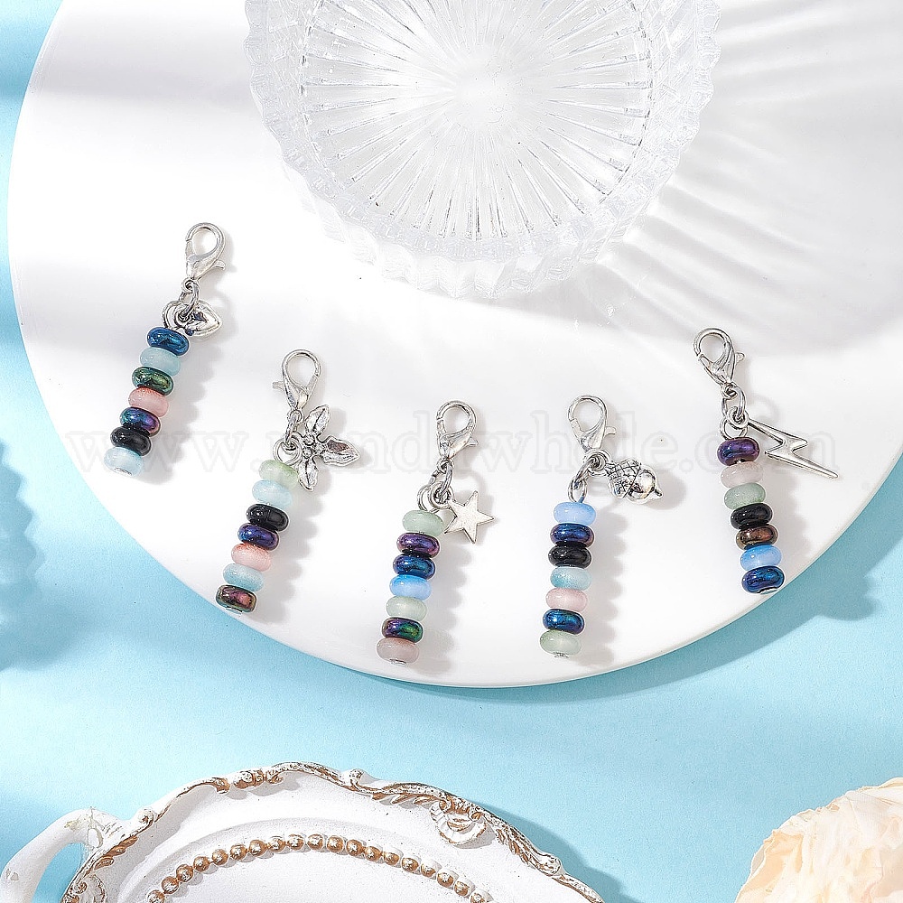 Кулон-рондель из имитации нефрита из стекла, Подвески из сплава в тибетском стиле и застежки-клешни для украшений сумок