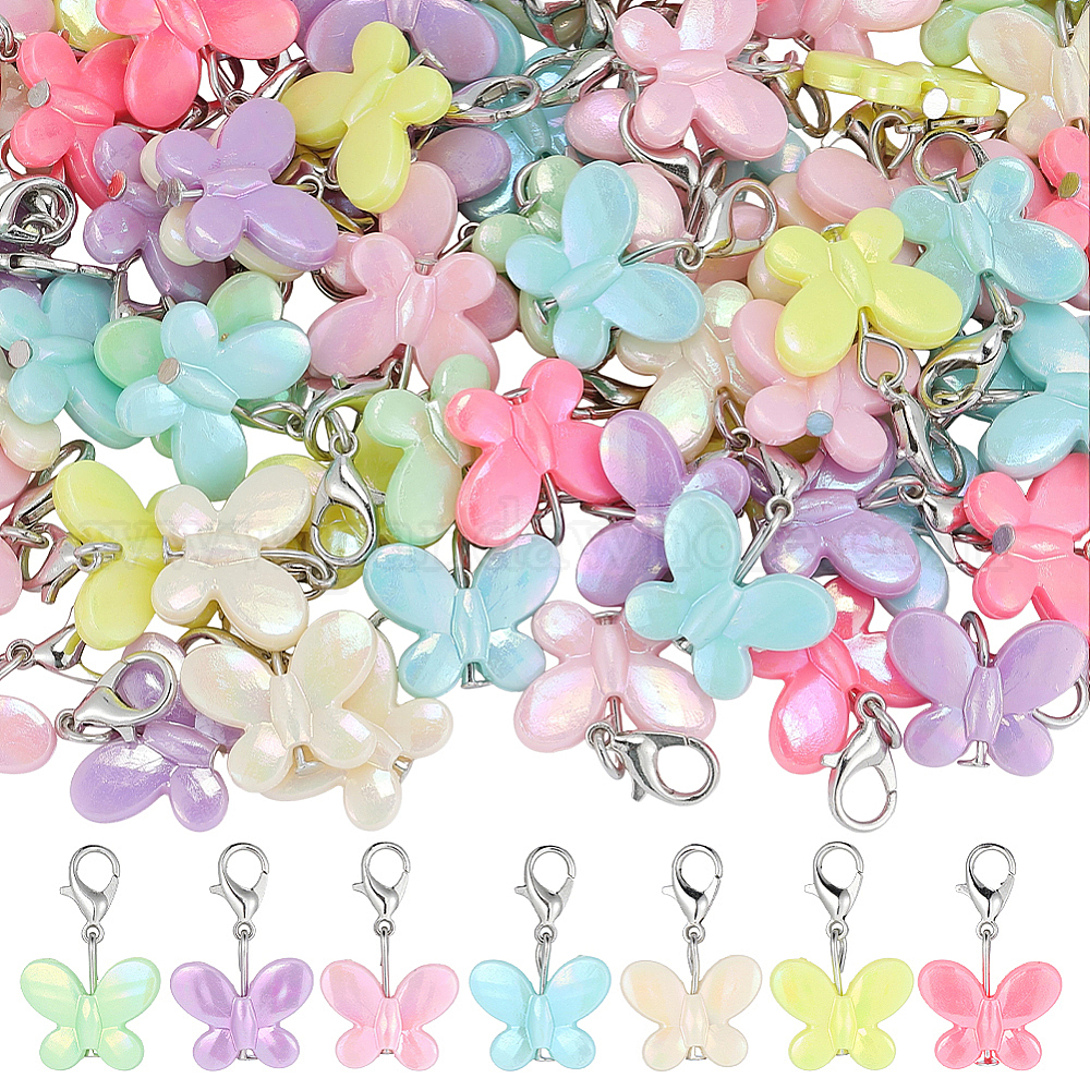100шт. непрозрачные акриловые подвески в виде бабочек, имитирующие жемчуг, Сплав с застежками когтя омара