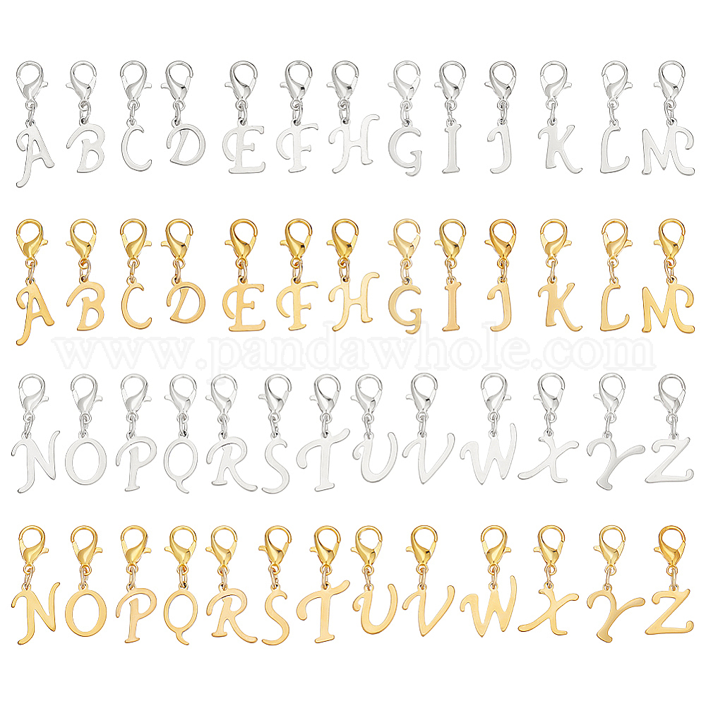 52 шт. 2 цвета 201 подвесные украшения из нержавеющей стали с буквами a~z, с застежками-карабинами из сплава