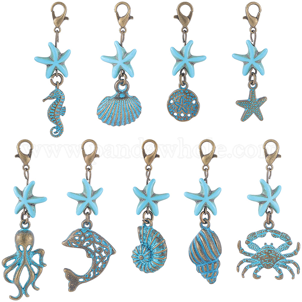 27 шт. 9 стили сплав с морской тематикой и подвесками из синтетической бирюзы, с карабин-лобстерами , разнообразные