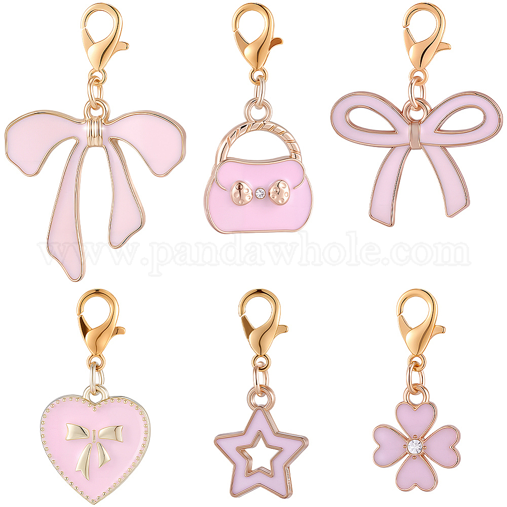 30 шт. 6 стили сплава розовая эмаль подвесные украшения, с цинковым сплавом застежками омаров коготь, Gloden