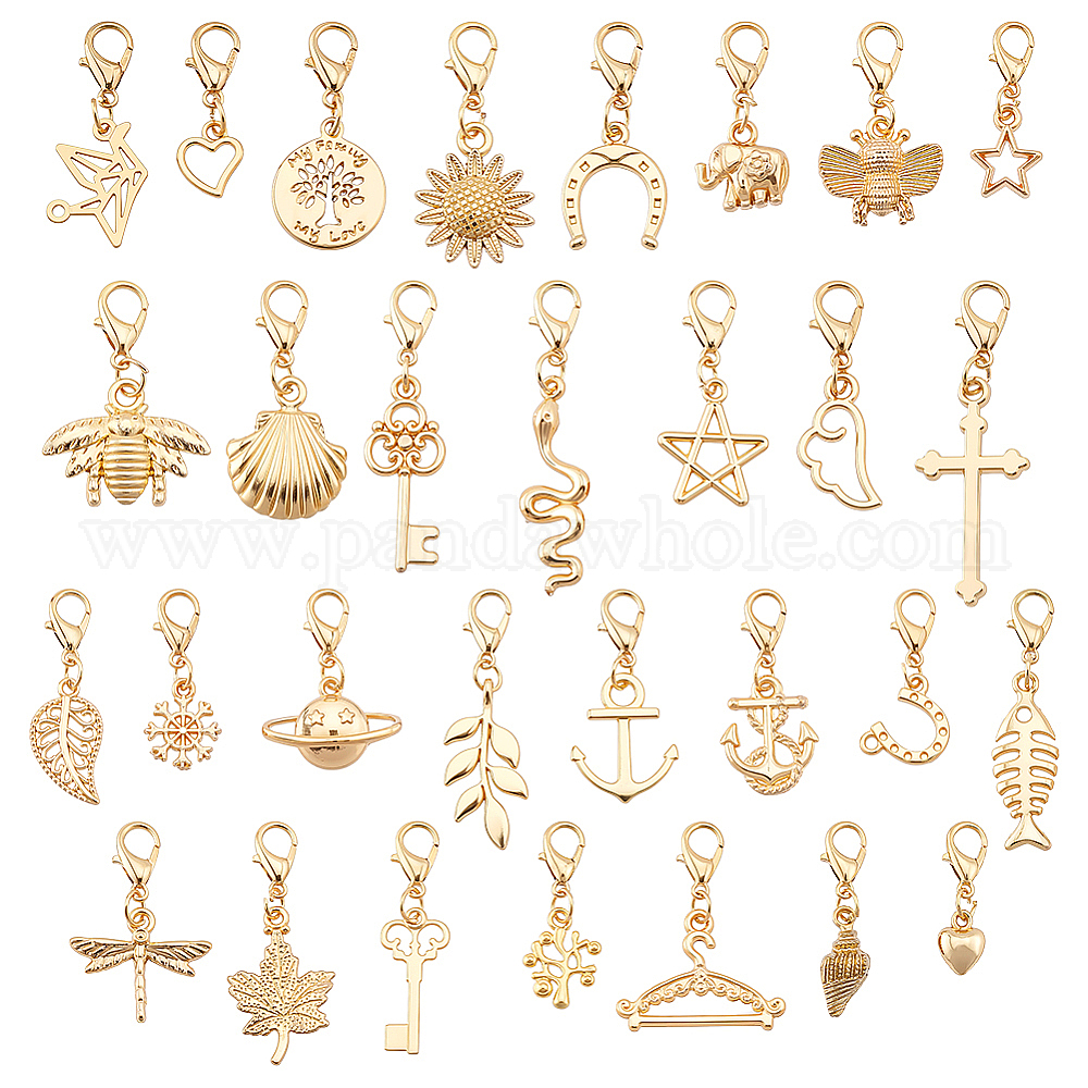 • Mixed Shapes 60Подвесные украшения из сплава шт., с застежкой омар, разнообразные, 23~42 мм