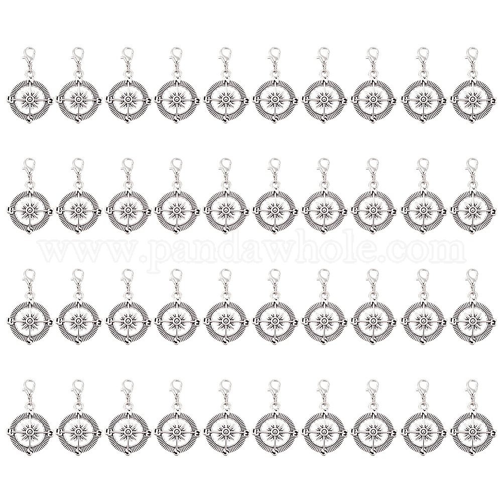 40 шт. подвесные украшения из сплава компаса, Сплав с застежками когтя омара