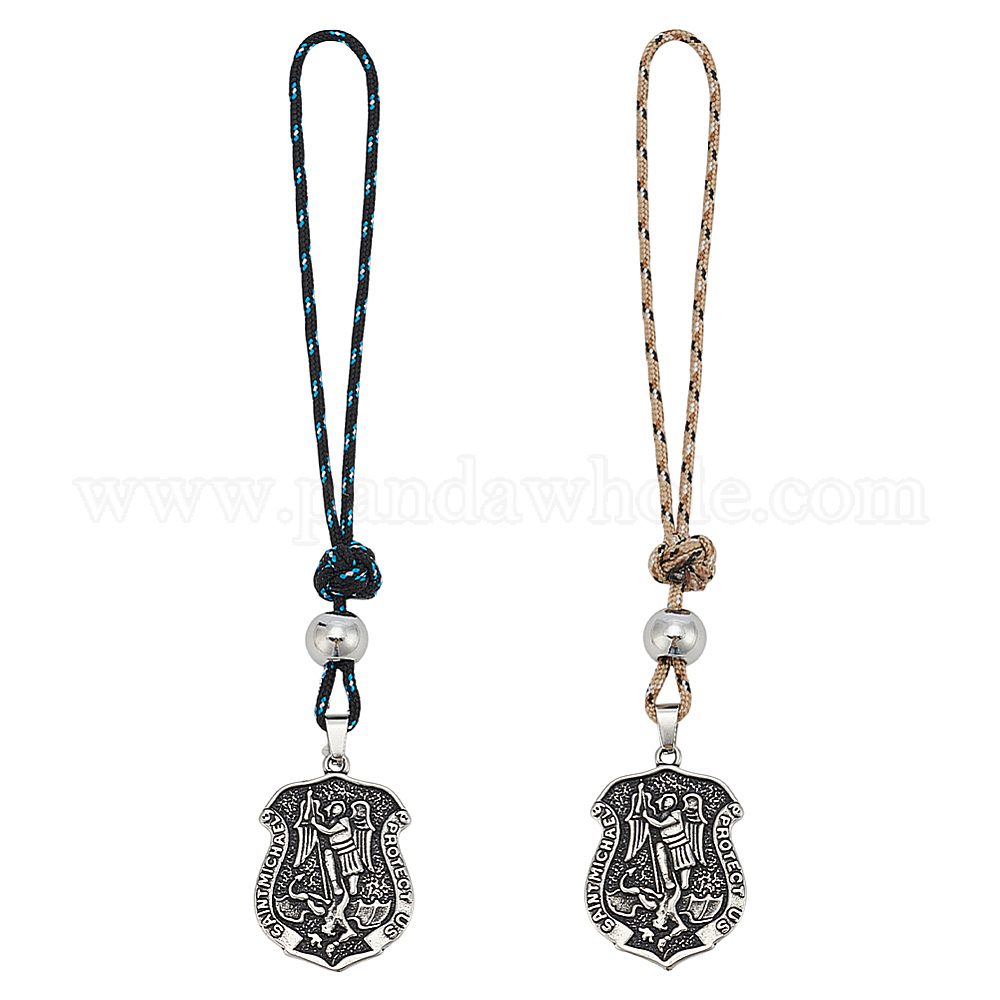 2шт. Щит с подвеской из нержавеющей стали с изображением архангела Михаила-хранителя, с веревками из полиэстера и спандекса