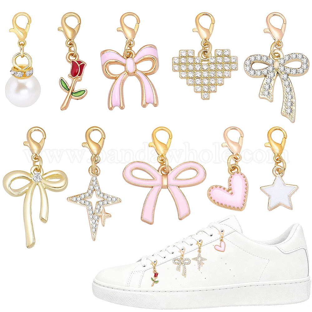 20 шт. 10 стили: подвески из сплава и стразов/эмали/пластика, Сплав с застежками когтя омара