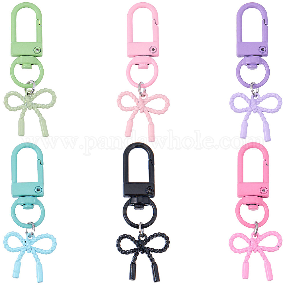 • (52) Непрозрачная лаванда 6 шт. подвесные украшения в виде бантов из сплава с напылением, Поворотные застежки-когти-омары для украшения сумок, разноцветные, 54 мм