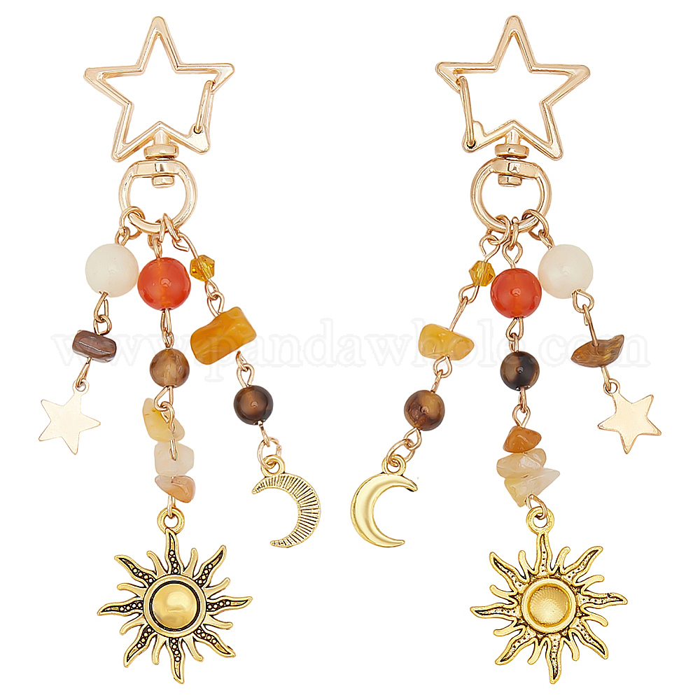 2шт. подвески в виде звезды и луны из сплава, с натуральным драгоценным камнем и стеклянными бусами