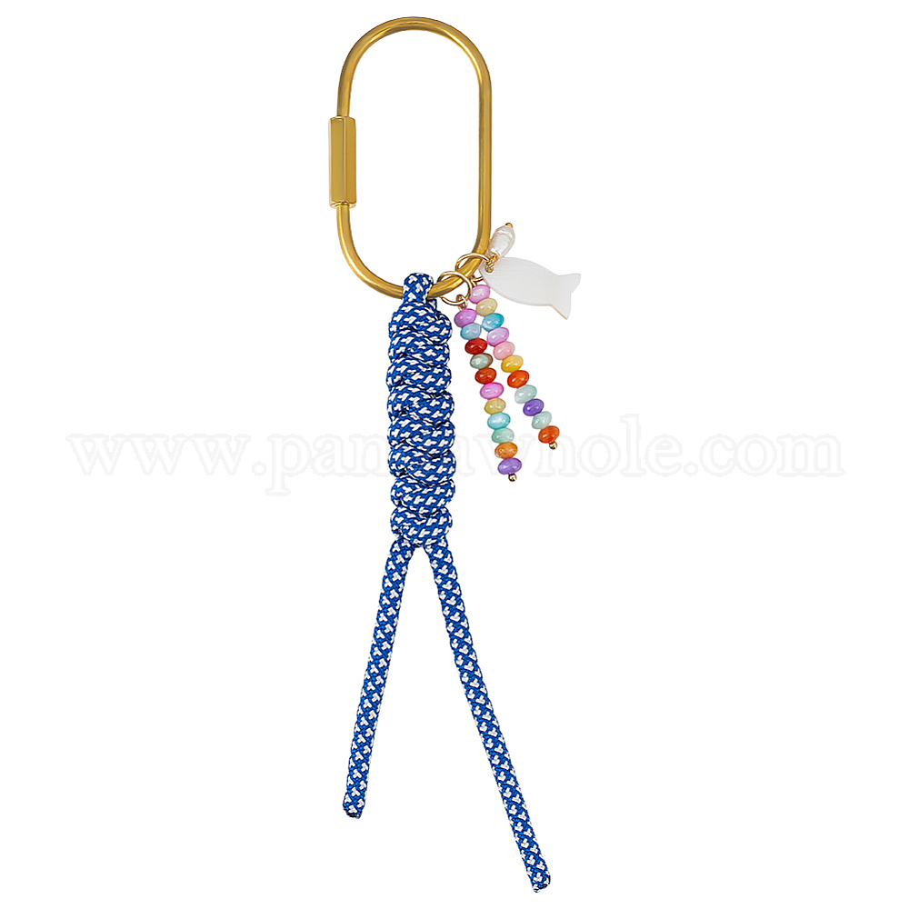 • Разноцветный Подвесные украшения из плетеного полиэфирного шнура и окрашенных натуральных ракушек в форме ронделей, с латунными винтовыми застежками и натуральным жемчугом, золотые, красочный, 190 мм