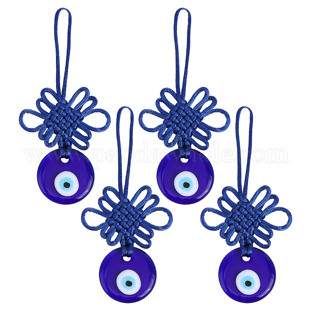 4 шт. ручной работы лэмпворк от сглаза с плоскими круглыми подвесками, с полиэфирным шнуром, китайский узел