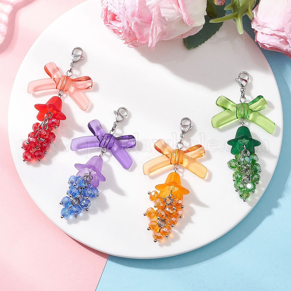 4 шт. стеклянные и акриловые подвесные украшения, с карабин-лобстерами , бантом и цветок (038J4N)