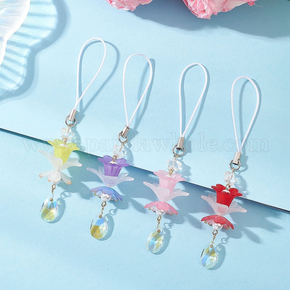4шт. подвесные украшения в виде цветов из стекла и акрила, с нейлоновыми ремешками