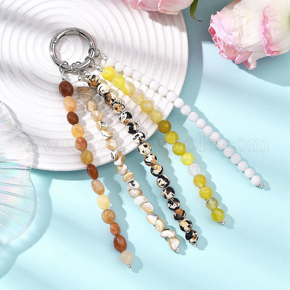 • Платина Подвески из натурального золотистого шелкового нефрита, малайзийского нефрита, ракушек-трохусов, синтетической бирюзы, полосатого агата/полосчатого агата, С кольцами из сплава цинка, платина, 162 мм