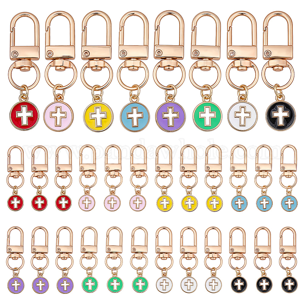32 шт. 8 цвета сплава эмали овальные с подвесными украшениями в виде креста, с поворотными застежками, золотые