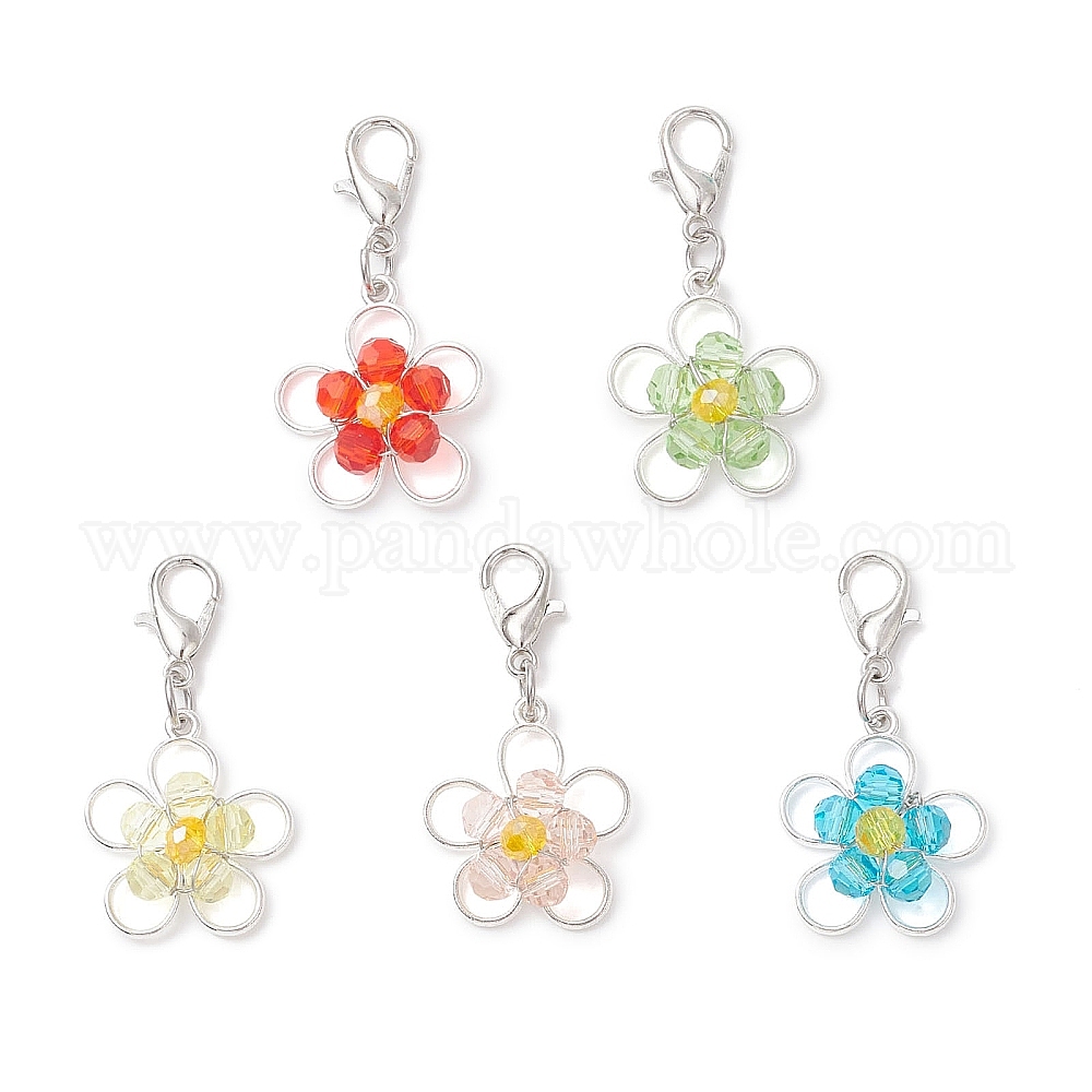 Подвесные украшения из сплава и стекла, с карабин-лобстерами , цветок