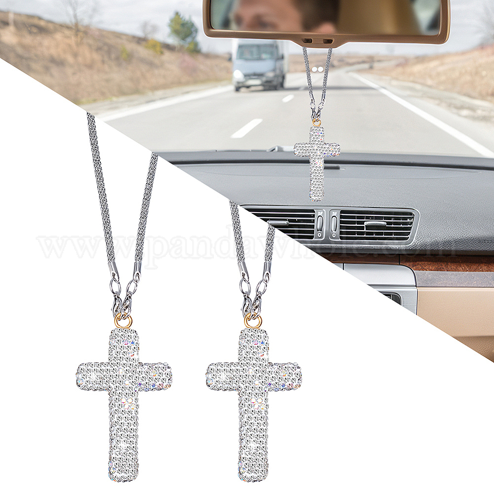 2шт. подвески в виде креста со стразами, с металлической цепочкой