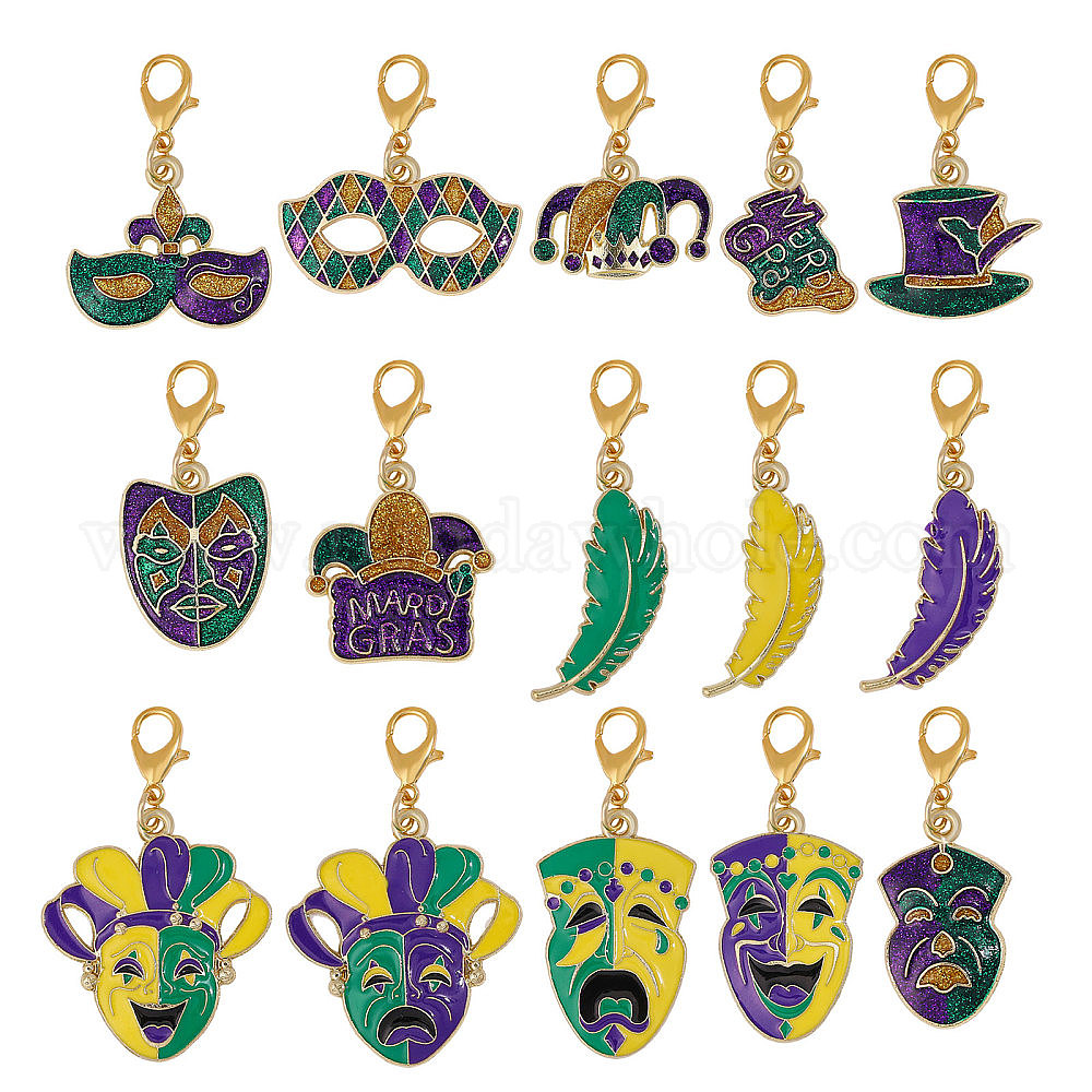 15 шт. подвесные украшения из эмалевого сплава для карнавала, разнообразные, Сплав с застежками когтя омара (038TQY)