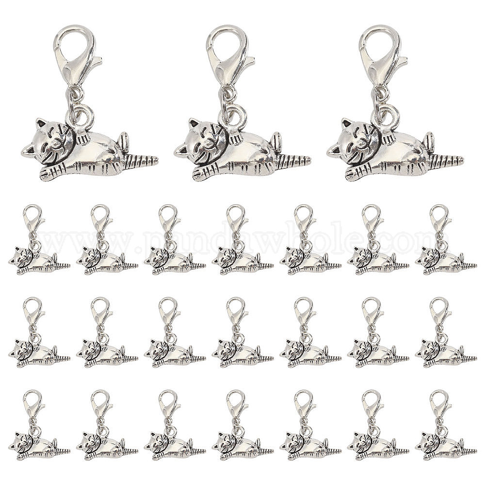 40 шт. подвесные украшения в форме кошки из сплава, с карабин-лобстерами