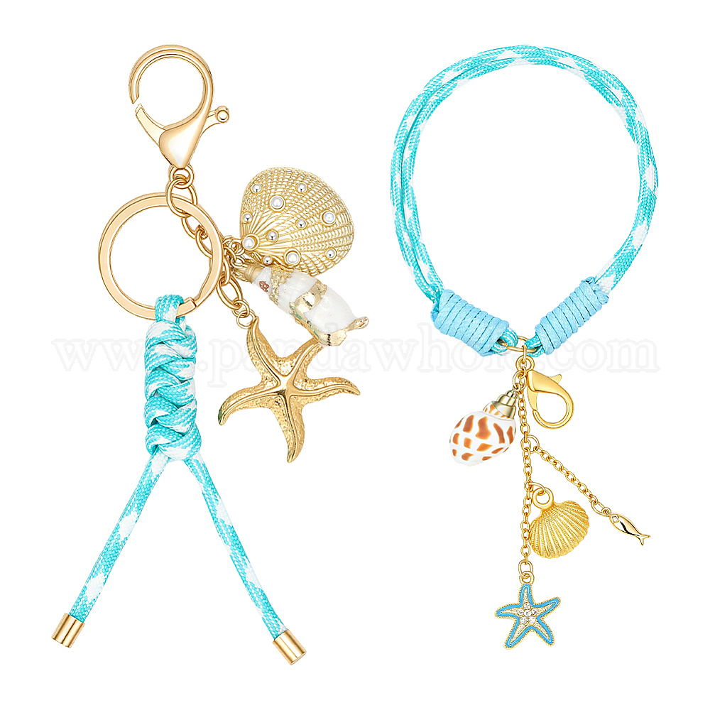 2 шт. подвесные украшения и брелоки из полиэстера в виде морских звезд, с кольцами из ракушек и сплава и застежками-карабинами из сплава, золотые