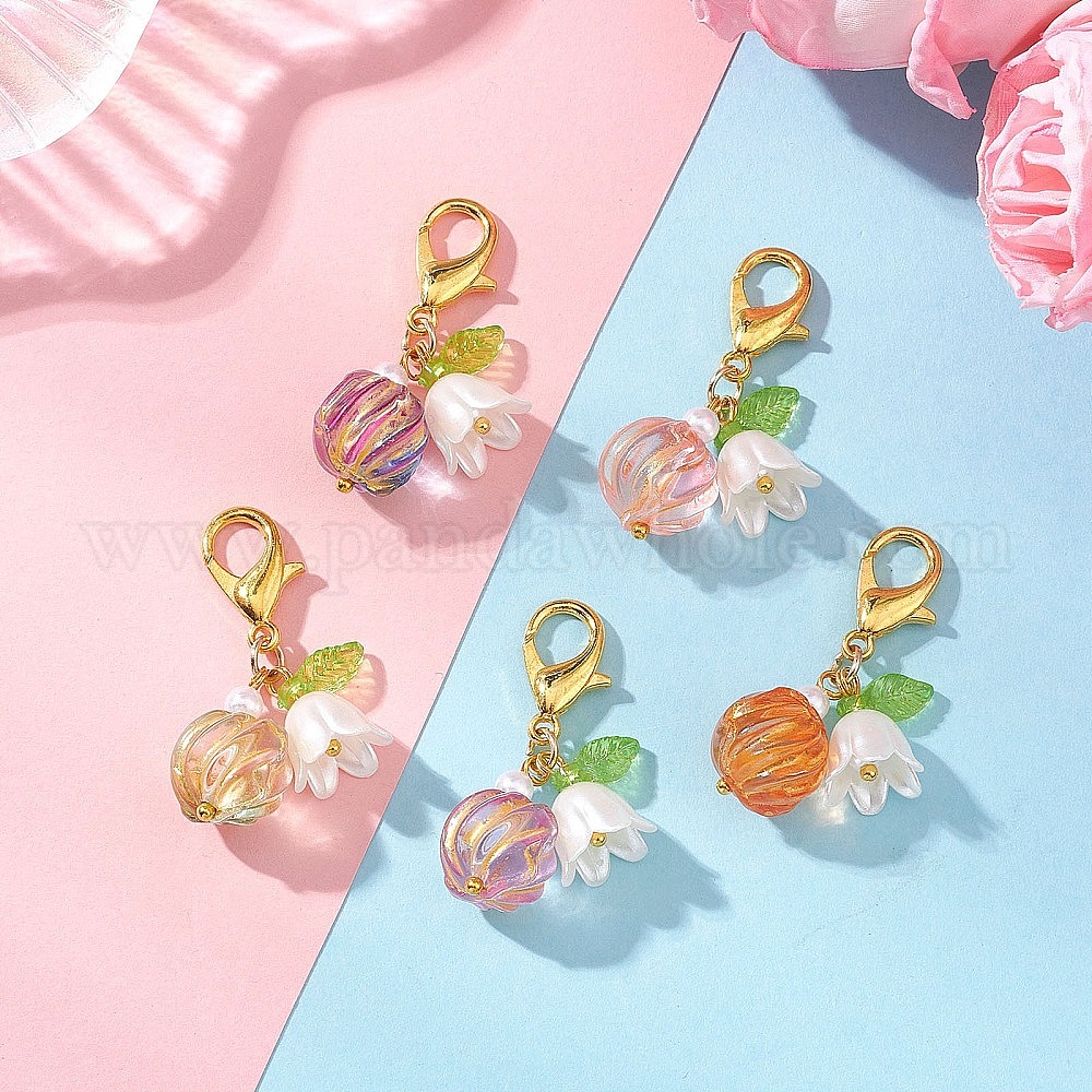 Подвесные украшения из стекла и акриловых листьев и краски для выпечки золотистого металла, Застежки-когти из цинкового сплава, подвески для украшений сумок