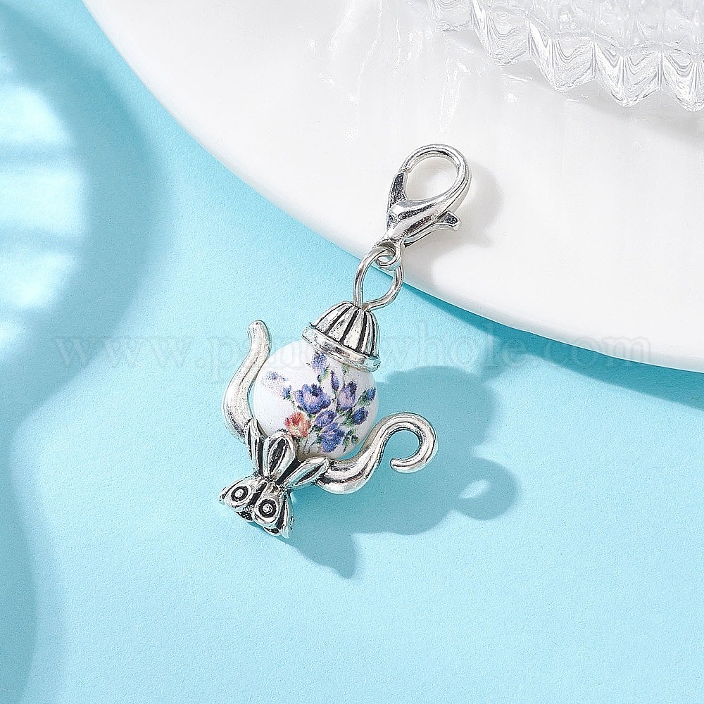 Декоративные подвески в виде чайника из стекла с принтом и аэрозольной росписью., Сплав с застежками когтя омара