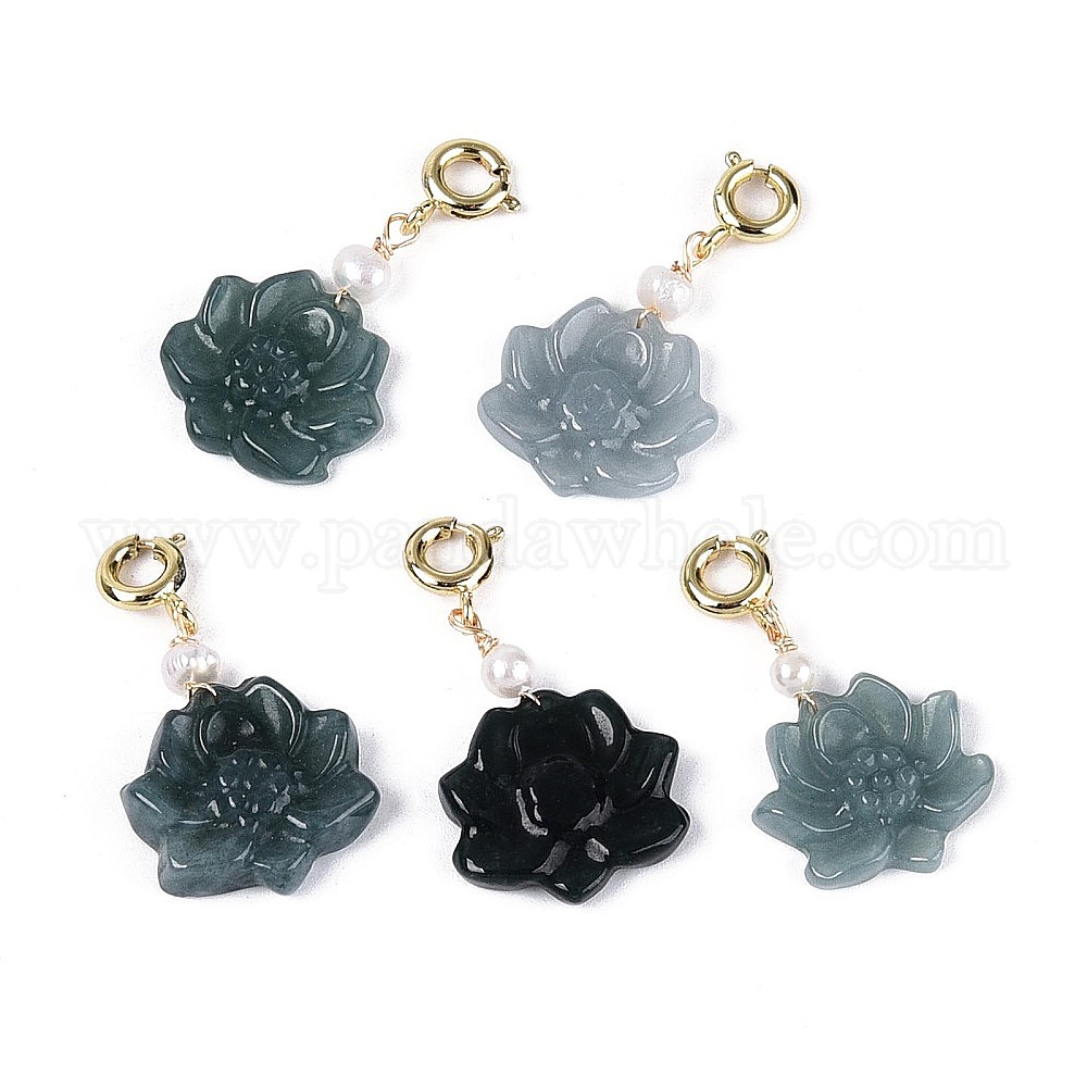 Подвески из натурального бирманского нефрита и натурального жемчуга., с латунной застежкой, лотос