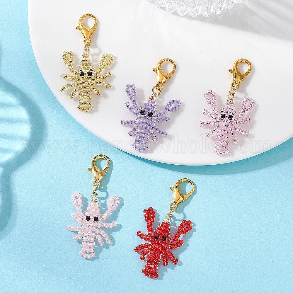 Подвеска в виде креветки из стеклянных бисеринок, с цинковым сплавом застежками омаров коготь