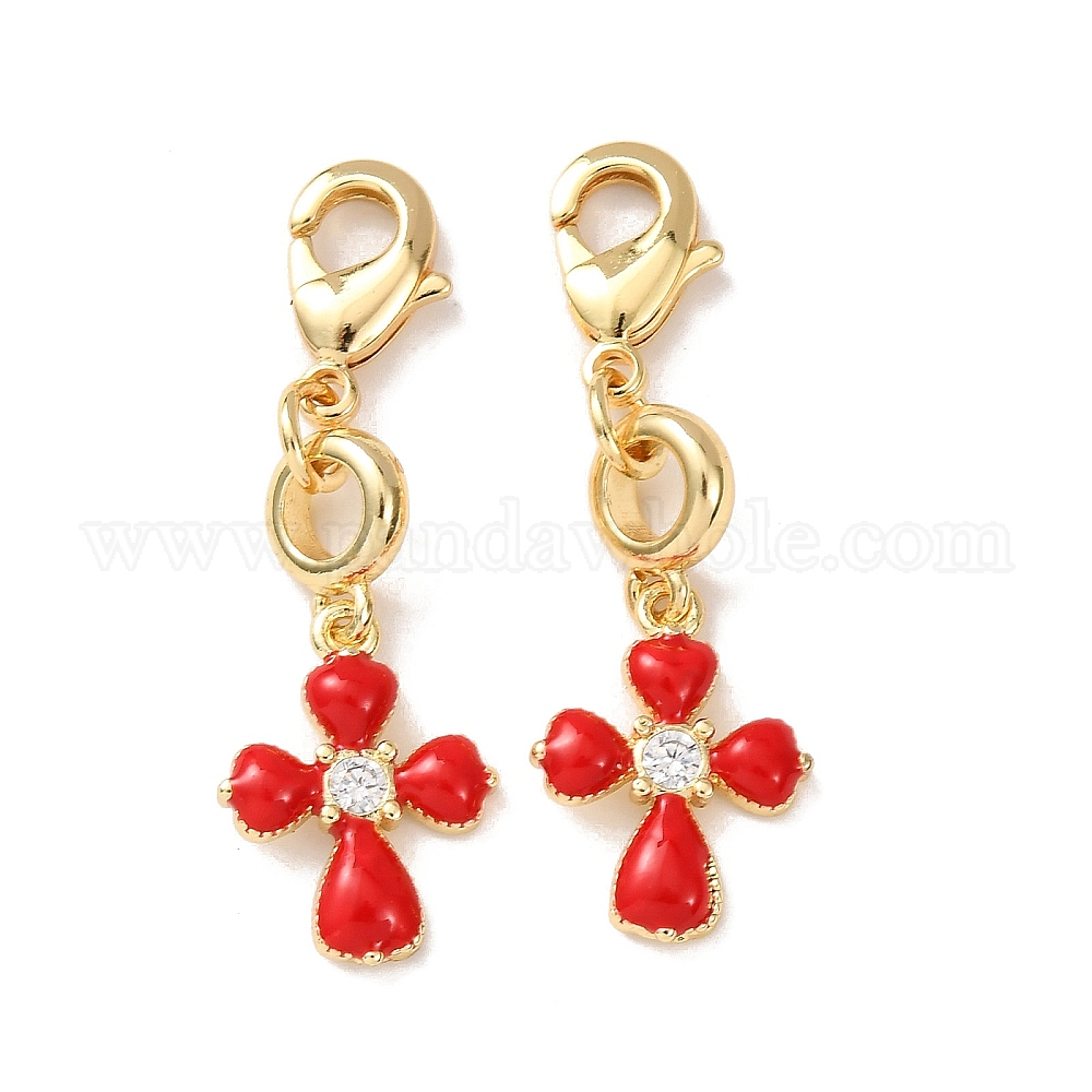 Подвеска в виде креста из латуни с микропаве из кубического циркония и эмали., с застежкой омар, стойки покрытие, долговечный, без кадмия и без свинца, золотые