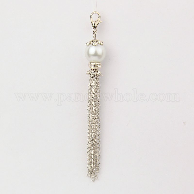 Стеклянные под жемчуг кисточка кулон украшения, с железными цепочками, латунные горный хрусталь бусы и сплава застежками когтя омара, 90~95 мм