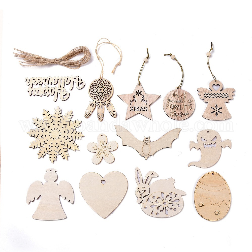Подвесные украшения из натурального дерева, со шнуром, для украшения дома партии, разнообразные